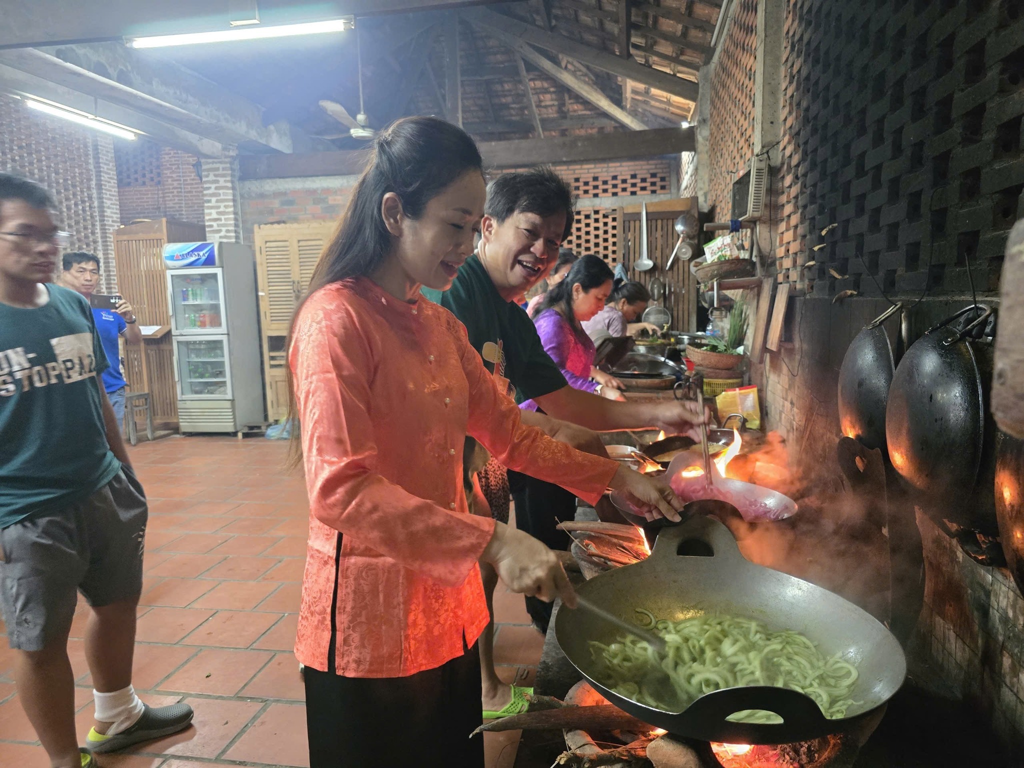 Cùng Út Trinh Bến Tre chọn cơm dừa dẻo, lột, bào, nhuộm màu từ thiên nhiên: xanh lá dứa, tím lá cấm, đỏ thanh long, cam trái gấc.. rồi cùng du khách chuẩn bị quây quần bên gian bếp quê, cùng xào những chảo mứt dừa, tiếng cười nói rôm rả hòa cùng mùi thơm ngọt ngào bay khắp nhà.