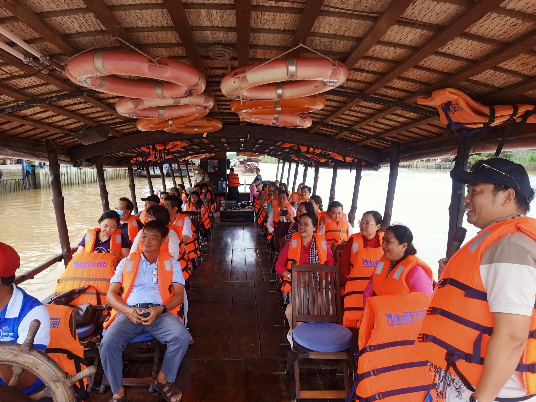 Đoàn Famtrip đi trên sông Cổ Chiên một trong chín nhánh của Sông Cửu Long