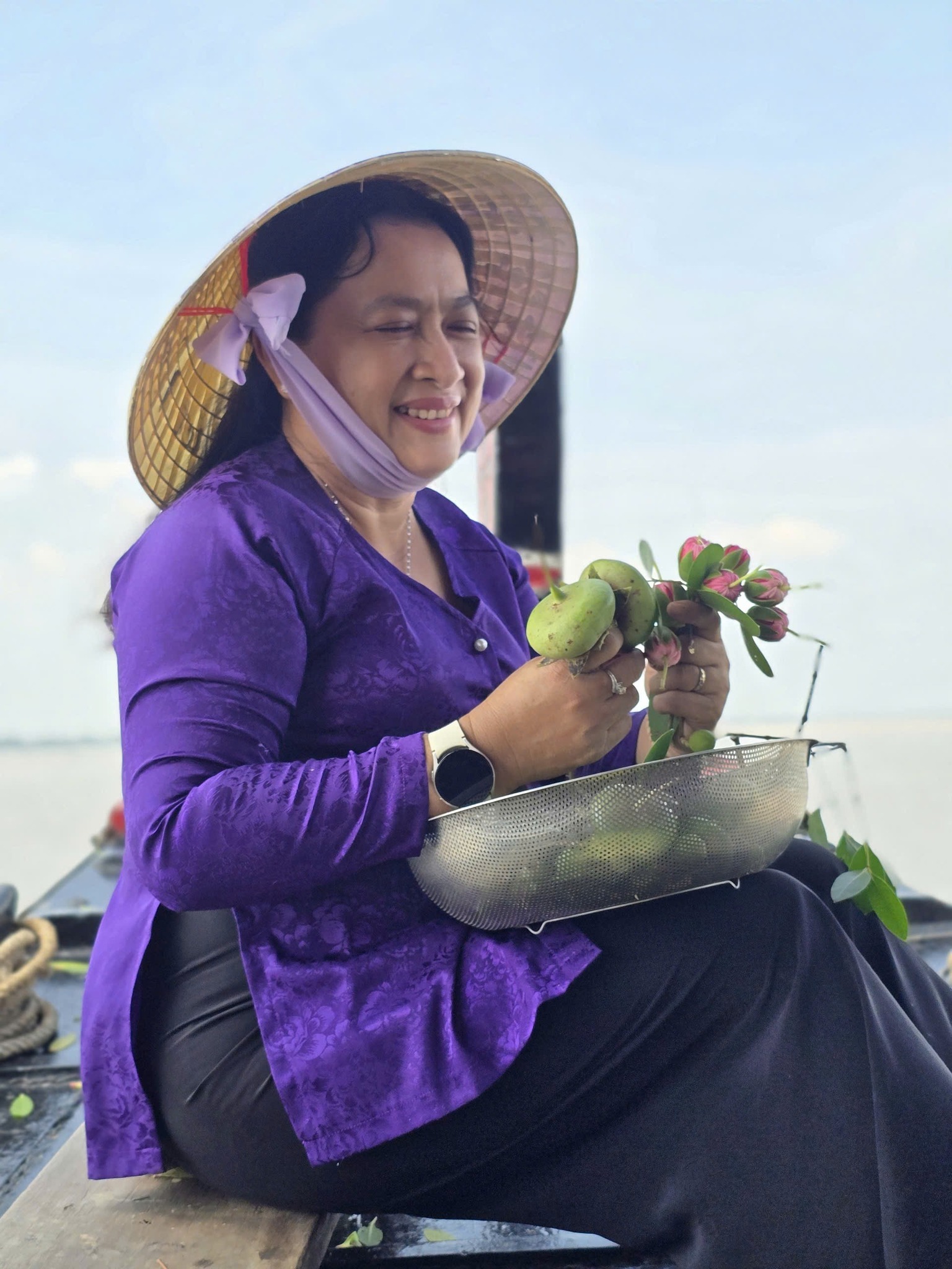 Bông bần trắng muốt, điểm thêm 1 chút tím làm điểm nhấn, bé xíu mà tinh khôi, nở nhẹ nhàng trên những tán lá xanh. Còn trái bần thì dần chuyển sang màu vàng nhạt, vị chua thanh thoảng trong gió, khiến ai đi ngang cũng nhớ về những món ăn quê nhà: canh chua bần cá ngát, cá linh nấu bần, mắm kho bần, gỏi bông bần..m Toàn là hương vị dân dã mà đậm đà tình đất