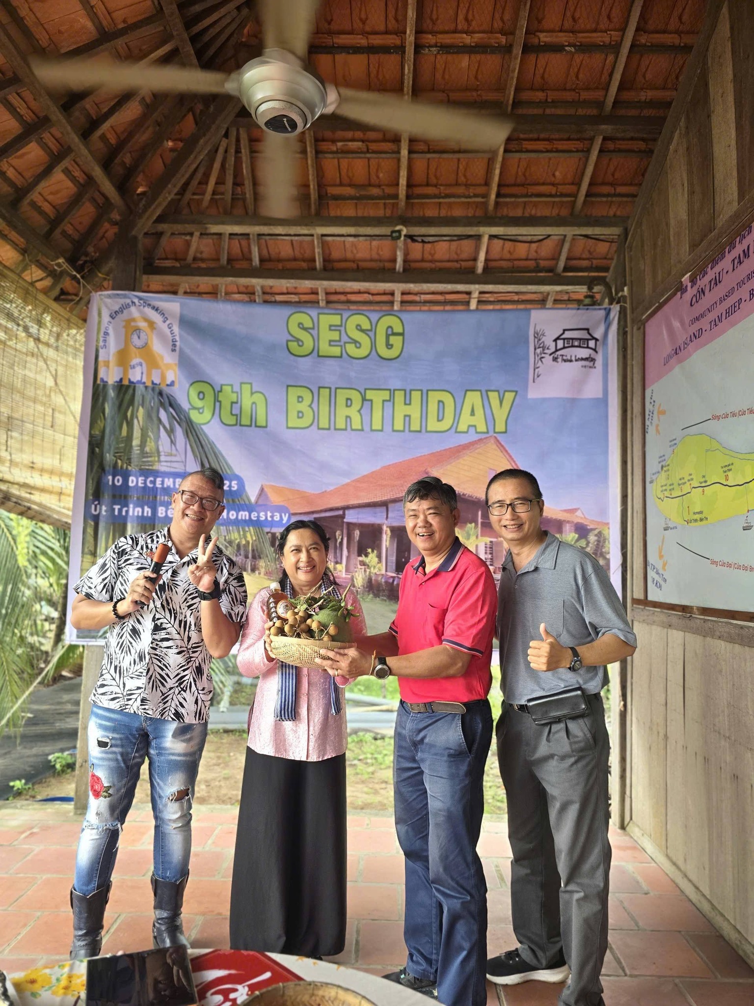 Đặc biệt, sự hiện diện của vợ chồng Út Trinh & Út Bình, từng là hướng dẫn viên tiếng Anh lâu năm trước khi xây dựng Mekong Travel, càng làm cho không khí buổi lễ trở nên ấm áp và đầy cảm xúc. Đối với ACE SESG, đây là nơi gặp gỡ những người bạn cũ trong nghề, cùng nhìn lại chặng đường đã qua và chúc mừng sự lớn mạnh của cộng đồng hướng dẫn viên tiếng Anh tại TP.HCM.